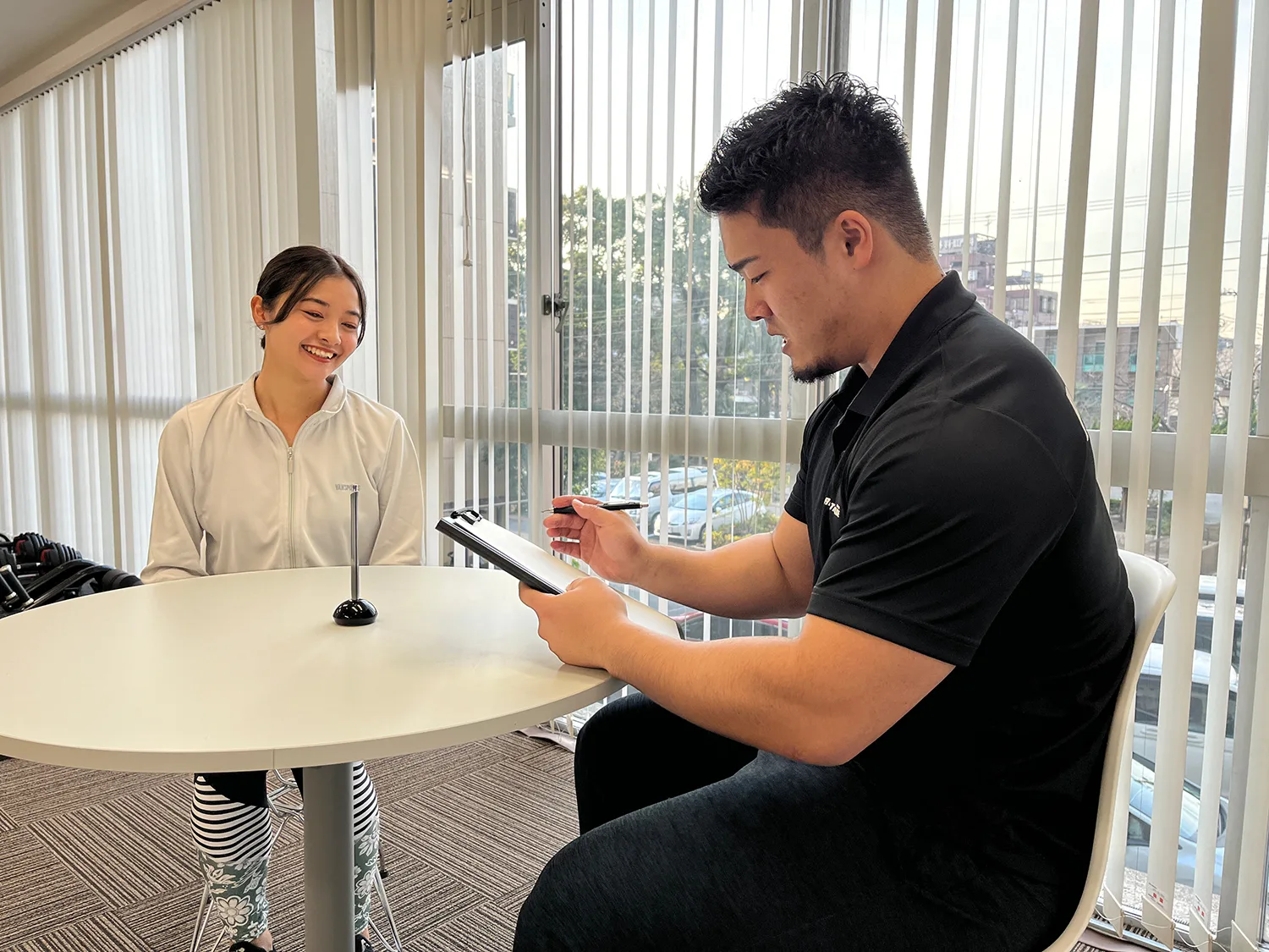 担当トレーナーが体の悩み、食生活、運動習慣を伺い、